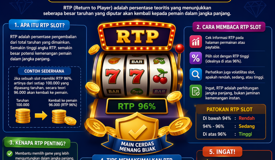 Banyak pemain slot online sering mendengar istilah RTP Slot, namun tidak sedikit yang masih bingung bagaimana cara memahami dan membacanya dengan tepat. Padahal, konsep ini sangat penting dalam menentukan peluang jangka panjang saat bermain. RTP atau Return to Player merupakan persentase teoritis yang menunjukkan seberapa besar kemungkinan dana yang diputar akan kembali kepada pemain. Dengan memahami dasar ini, kamu tidak lagi bermain hanya berdasarkan keberuntungan semata, tetapi mulai menggunakan pendekatan yang lebih terarah dan rasional.